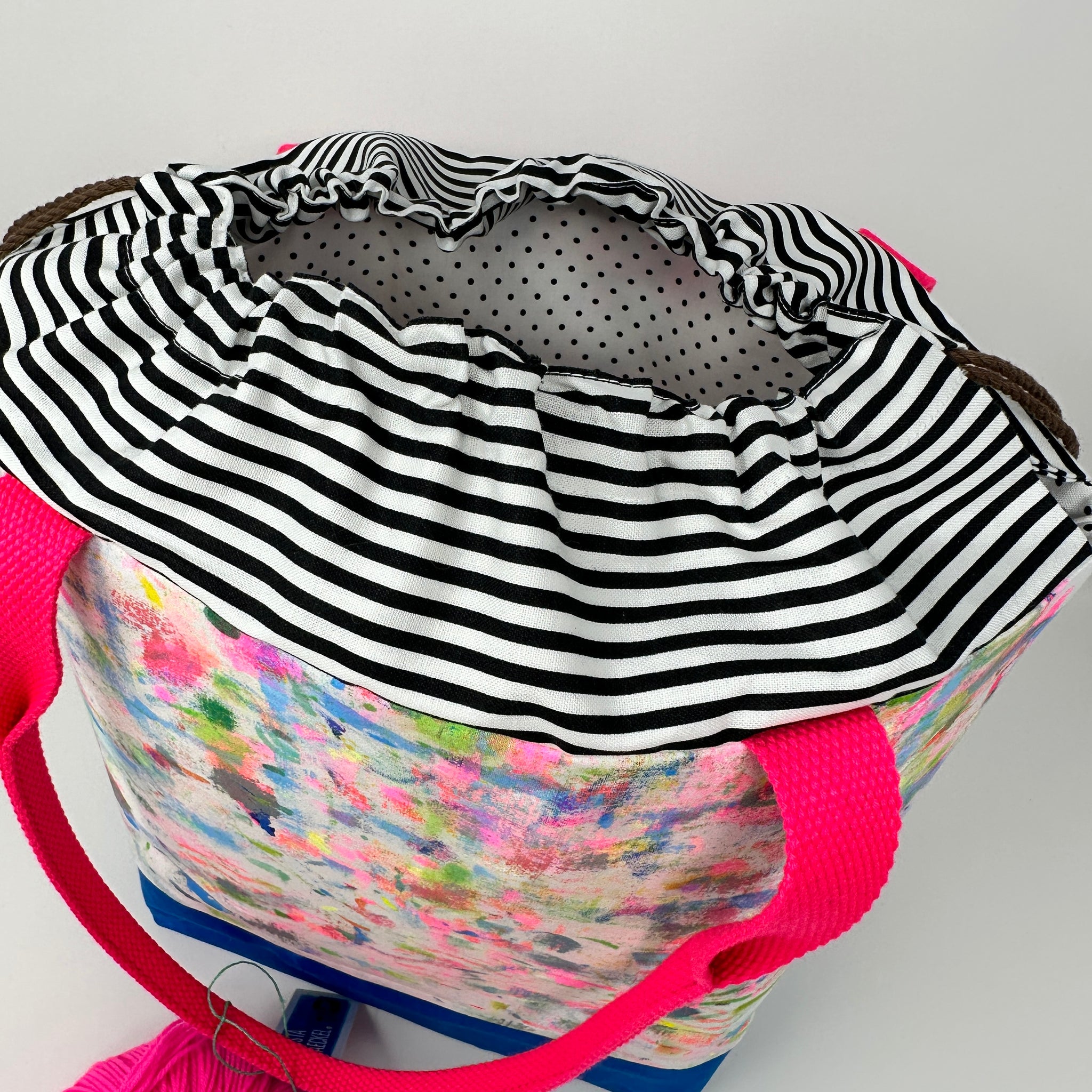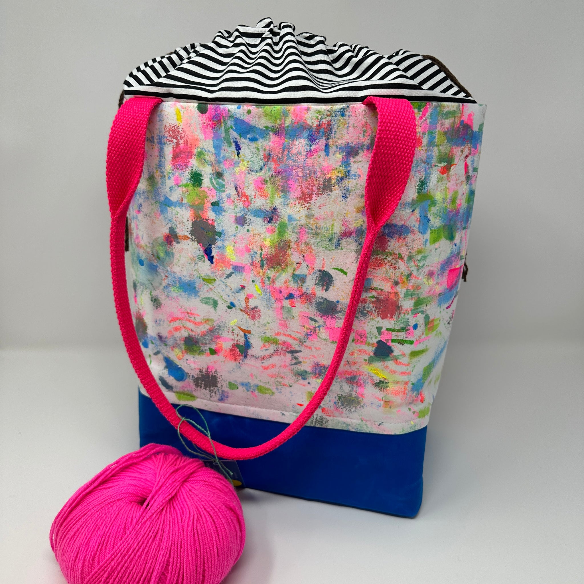 These bags are sewn from the fabric I print on. The front and back will be different due to the nature of the material.