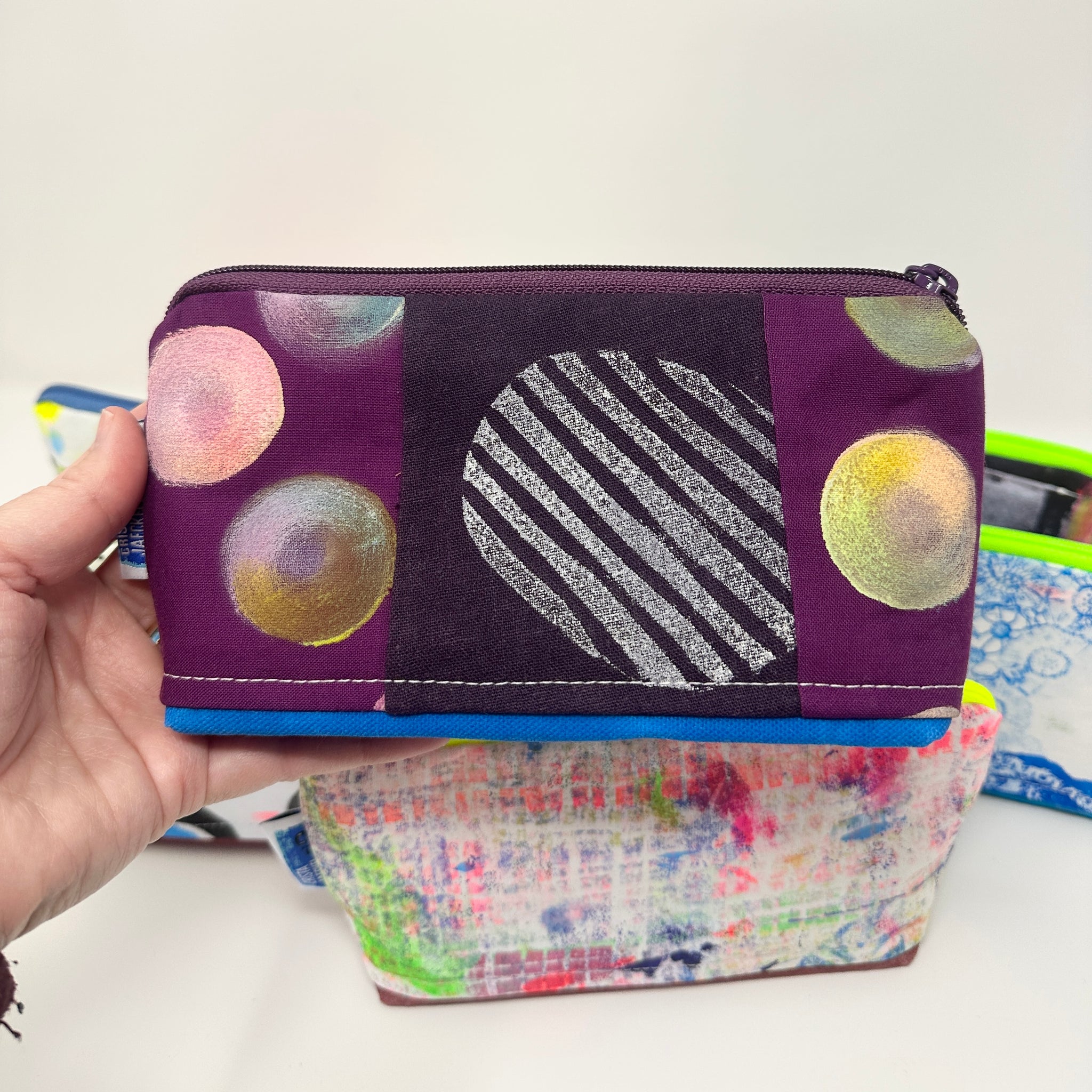 This listing is for a new style notions bag I am sewing. This one features a sturdy waxed canvas bottom and a wide , zipper opening.